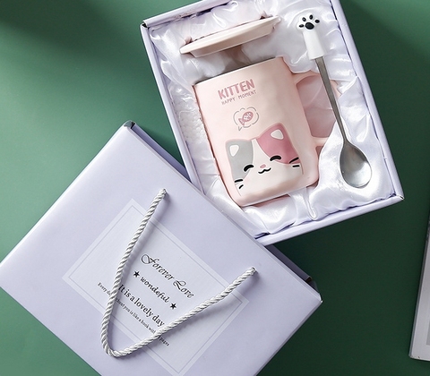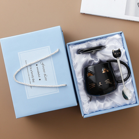 Creatieve Schattige Kat Cartoon Keramische Theekop Geschenkset